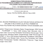 - PELAKSANAAN SELEKSI PSIKOTES DAN SELEKSI KESEHATAN SIPENCATAR JALUR POLA PEMBIBITAN KEMENTERIAN PERHUBUNGAN TAHUN 2025 TITIK LOKASI PADA POLITEKNIK PELAYARAN SORONG